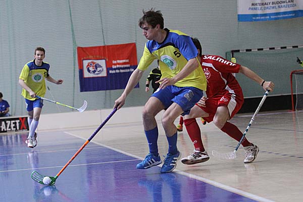 24 Tore in einem Spiel, davon elf im ersten Drittel: schon diese blanke Zahl zeigte, was für ein wahnsinniges Floorball-Spiel sich in der zweiten Partie des Tages abspielte - leider war dieses Match um Platz 3 der Herren sicherlich nicht das Sahnestückchen, sondern eher der Tiefpunkt eines so schön organisierten Superfinal-Events: wähernd in den ersten fünf Minuten das Spielsekretariat sich noch ausruhen durfte, weil in einem schier wahnsinnigen Rhythmus Akteure aus dem Spielbereich befördert wurden, gehörten die nächsten Minuten einzig und allein Madex Gorale Nowy Targ: zwischen der 5. und der 8. Minute bedeuteten fünf Tore für die Mannschaft aus Südpolen eigentlich schon eine kleine Vorentscheidung - Siedlec wirkte nach dem physischen Beginn der ersten Minuten gar nicht mehr bereit und fing sich in der Folgezeit in der 11. und 14. Minute noch weitere Tore. Sieben Tore Unterschied - eigentlich war die Partie damit entschieden. Zweimal kam Siedlec noch einmal ins Spiel zurück, kassierte dann aber nach dem zwischenzeitlichen 8:4 und 12:7 dumme Tore - das dreizehnte Tor für Nowy Targ vielleicht so etwas wie das symptomatischste Tor des Tages: in Überzahl hatte Siedlec - Patryk Wronka musste in der 46. Minute auf die Strafbank - auf 12:8 noch einmal zu verkürzen - bei einem langen Befreiungsschlag, der weit am Tor vorbeigesegelt werde, wollte Maciej Jastrzebski im Siedlecer Tor den Ball schnell machen, machte sich lang und schob den Ball nach vorne - doch dort stand mit Piotr Kostela, der sich für das geschenkte Unterzahltor nur bedanken konnte. Am Ende schaukelte so Nowy Targ den Sieg in einem Spiel mit zu vielen Fehlern und Nervositäten auf beiden Seiten nach Hause.