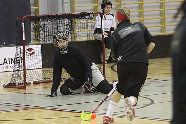 in der starken Laura Loisa ihren Meister. Erst zwei Minuten vor der Pause zeigte die Anzeige wieder einen ausgeglichenen Spielstand an - Heli Suoreijus hatte nach einem