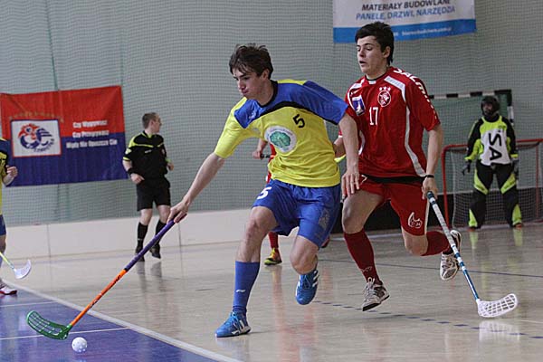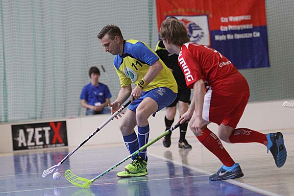 24 Tore in einem Spiel, davon elf im ersten Drittel: schon diese blanke Zahl zeigte, was für ein wahnsinniges Floorball-Spiel sich in der zweiten Partie des Tages abspielte - leider war dieses Match um Platz 3 der Herren sicherlich nicht das Sahnestückchen, sondern eher der Tiefpunkt eines so schön organisierten Superfinal-Events: wähernd in den ersten fünf Minuten das Spielsekretariat sich noch ausruhen durfte, weil in einem schier wahnsinnigen Rhythmus Akteure aus dem Spielbereich befördert wurden, gehörten die nächsten Minuten einzig und allein Madex Gorale Nowy Targ: zwischen der 5. und der 8. Minute bedeuteten fünf Tore für die Mannschaft aus Südpolen eigentlich schon eine kleine Vorentscheidung - Siedlec wirkte nach dem physischen Beginn der ersten Minuten gar nicht mehr bereit und fing sich in der Folgezeit in der 11. und 14. Minute noch weitere Tore. Sieben Tore Unterschied - eigentlich war die Partie damit entschieden. Zweimal kam Siedlec noch einmal ins Spiel zurück, kassierte dann aber nach dem zwischenzeitlichen 8:4 und 12:7 dumme Tore - das dreizehnte Tor für Nowy Targ vielleicht so etwas wie das symptomatischste Tor des Tages: in Überzahl hatte Siedlec - Patryk Wronka musste in der 46. Minute auf die Strafbank - auf 12:8 noch einmal zu verkürzen - bei einem langen Befreiungsschlag, der weit am Tor vorbeigesegelt werde, wollte Maciej Jastrzebski im Siedlecer Tor den Ball schnell machen, machte sich lang und schob den Ball nach vorne - doch dort stand mit Piotr Kostela, der sich für das geschenkte Unterzahltor nur bedanken konnte. Am Ende schaukelte so Nowy Targ den Sieg in einem Spiel mit zu vielen Fehlern und Nervositäten auf beiden Seiten nach Hause.